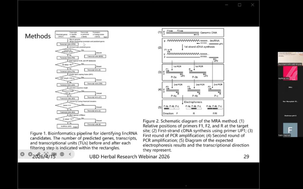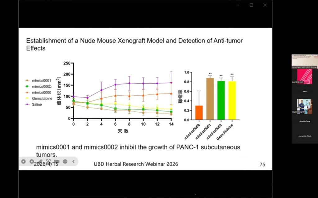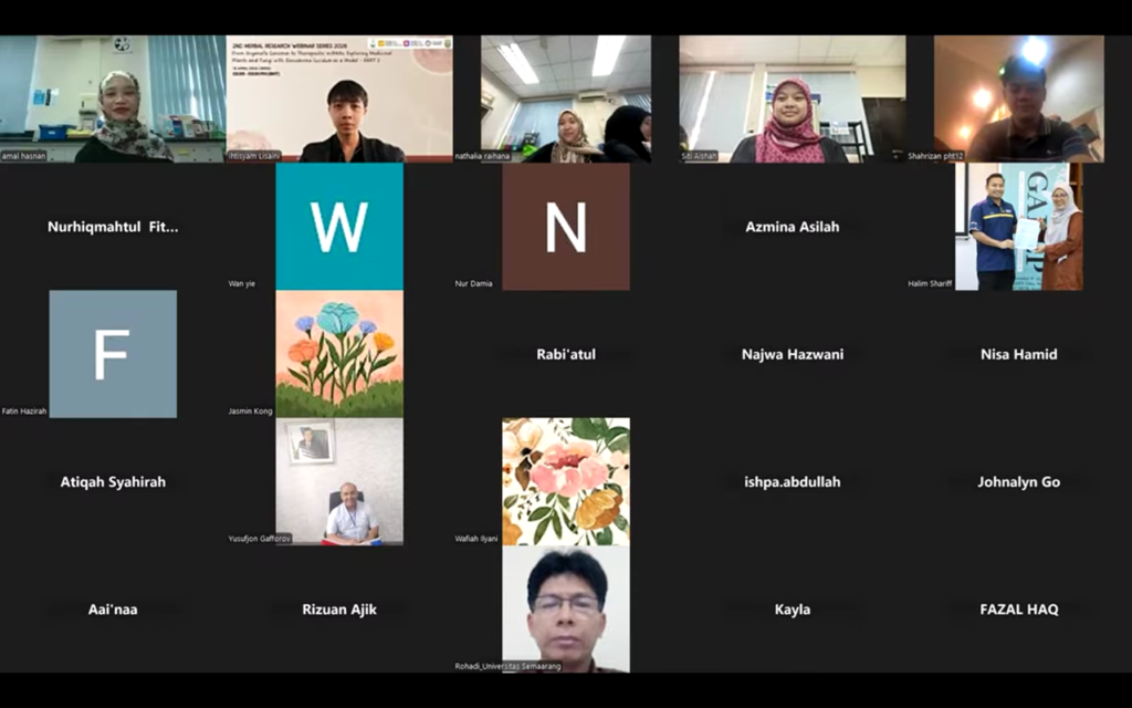 The webinar concluded with an engaging Q&A session, where participants discussed the scalability of such research, the integration of traditional medicine with modern molecular approaches, and the potential for similar studies in Brunei. Overall, the session provided valuable insights into cutting-edge methodologies and reinforced the importance of multidisciplinary collaboration in advancing herbal medicine research.