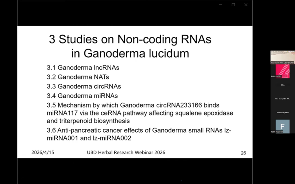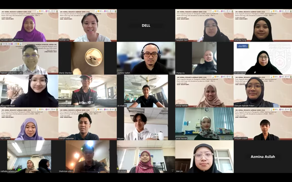 The 2nd Herbal Research Webinar Series 2026, organised by the Herbal Research Group (HRG), Universiti Brunei Darussalam (UBD), was successfully held on 15 April 2026. The session featured Professor Liu Chang, Professor, Doctoral Supervisor, and Deputy Director at the Center for Bioinformatics, Institute of Medicinal Plant Development (IMPLAD), Chinese Academy of Medical Sciences (CAMS), Beijing, China. The webinar served as a continuation of his previous presentation, focusing on advanced genomic and molecular approaches in medicinal plant and fungal research.